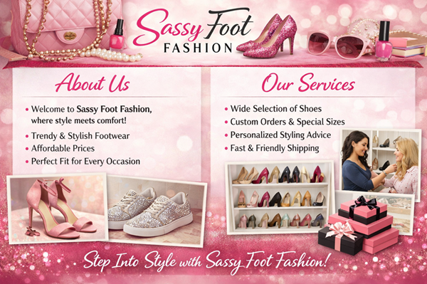 Sassy Foot Fashion offers thoughtfully designed apparel collections that blend fashion, comfort, and quality craftsmanship. Our services focus on delivering premium apparel through carefully curated designs, innovative concepts, and a commitment to modern style. From unique fashion pieces to customized apparel solutions, we strive to provide products that allow individuals and organizations to express their identity through elevated fashion.